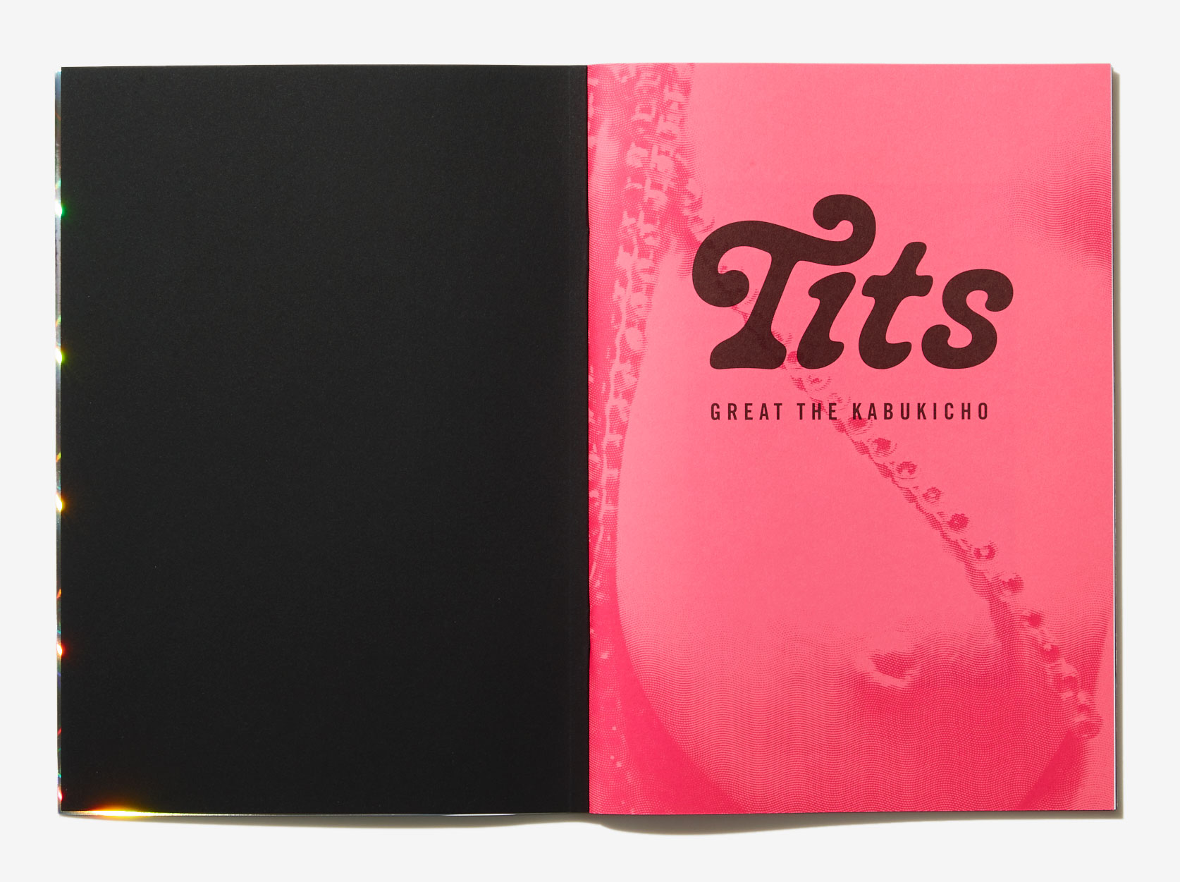 『Tits』は、「おっぱいで世界平和♥」をモットーに、2021年6月デビューから11年を迎えた踊り子 、鈴香音色を3年にわたり撮影したドキュメンタリー写真集 。2018年正月、今はなき「DX歌舞伎町ミュージック劇場」の新春公演中に行われた稀有な演目【nyotai:nk】(鈴香のストリップとグラフィティライター5名によるコラボレーション)をきっかけに彼女に出会い、そのオリジナリティに魅了されたグレート・ザ・歌舞伎町が、各地のストリップ劇場内外で撮りおろした。